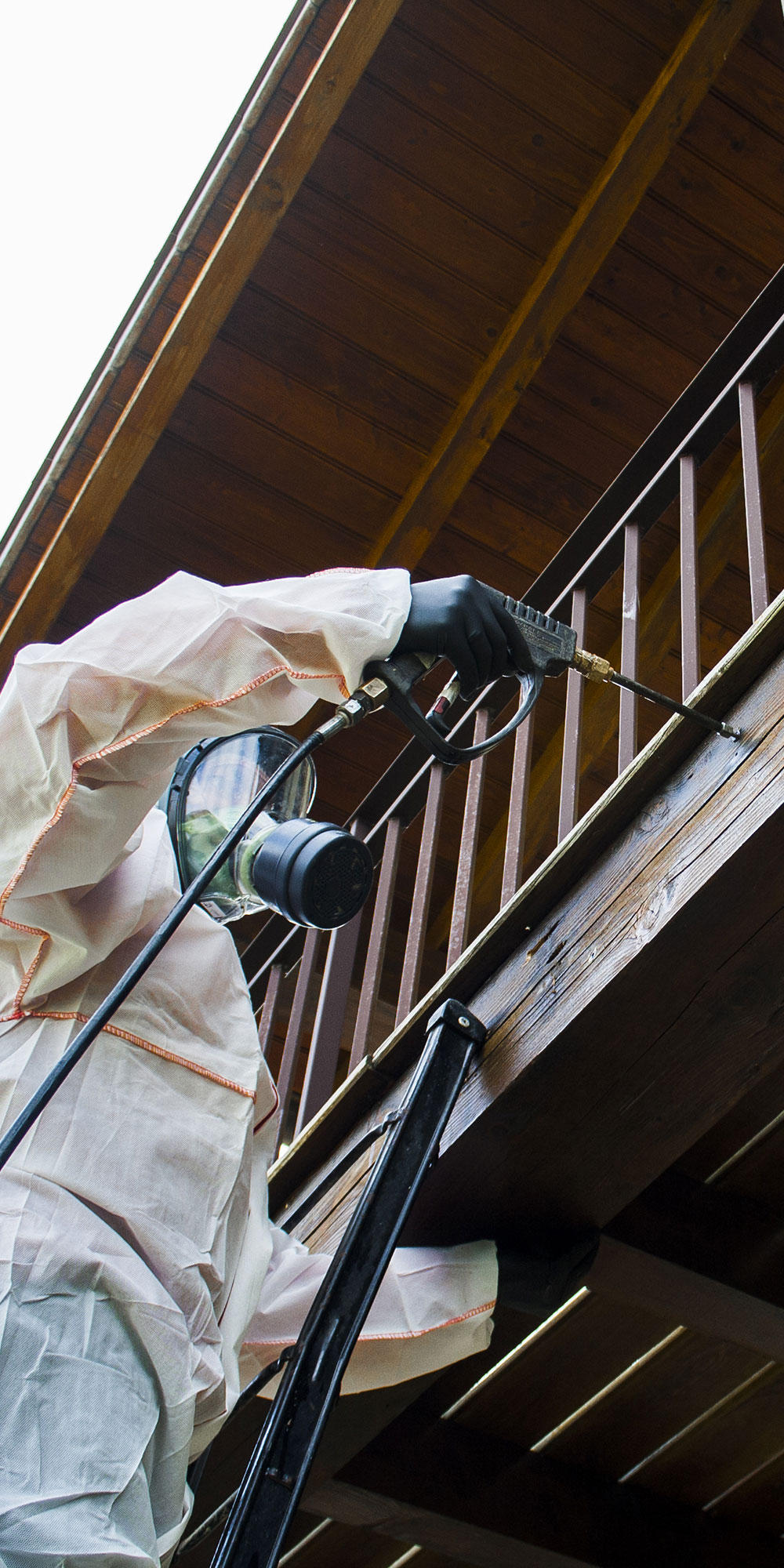 Actuamos contra todo tipo de insectos xilófagos, como son la termita, la carcoma, la polilla de la madera o la avispa carpintera.